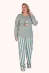 Este é um Pijama produzido em Viscolycra, composto por uma Blusa manga longa na cor verde, com estampa frontal de urso e aplicação de pompom. Composto também por uma Calça com estampa listrada e elástico na cintura de 2cm.