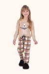 Este é um Pijama produzido em Malha, composto por uma Blusa manga longa na cor bege, com estampa frontal de urso, gola e punho em ribana. Composto também por uma Calça com estampa xadrez, elástico na cintura de 2cm e cadarço decorativo.