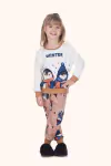 Este é um Pijama produzido em Molecotton, composto por uma Blusa manga longa na cor marfim, com estampa frontal de pinguin, gola e punho e barra em ribana contrastante na vor marrom. Composto também por uma Calça com estampa de pinguin, punho e cós em ribana contrastante na vor marrom e elástico na cintura de 4cm.